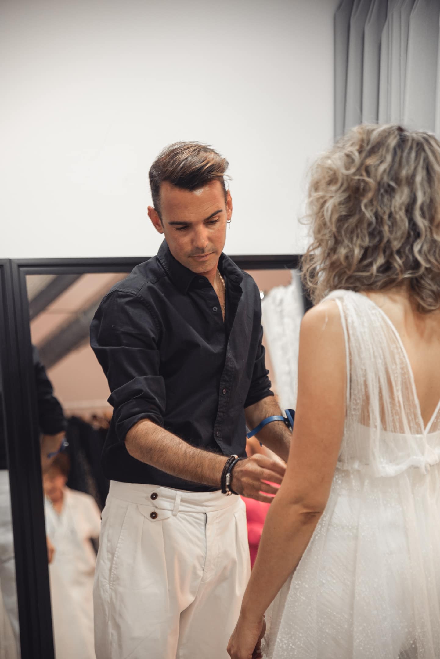En su atelier, cada vestido nace de la armonía entre técnica y emoción. Es un refugio donde la mujer se encuentra a sí misma, donde la prenda acompaña sus gestos y revela su luz de manera natural. Cada puntada es un susurro, cada pliegue un poema y cada tela un instante que se prolonga en el tiempo.