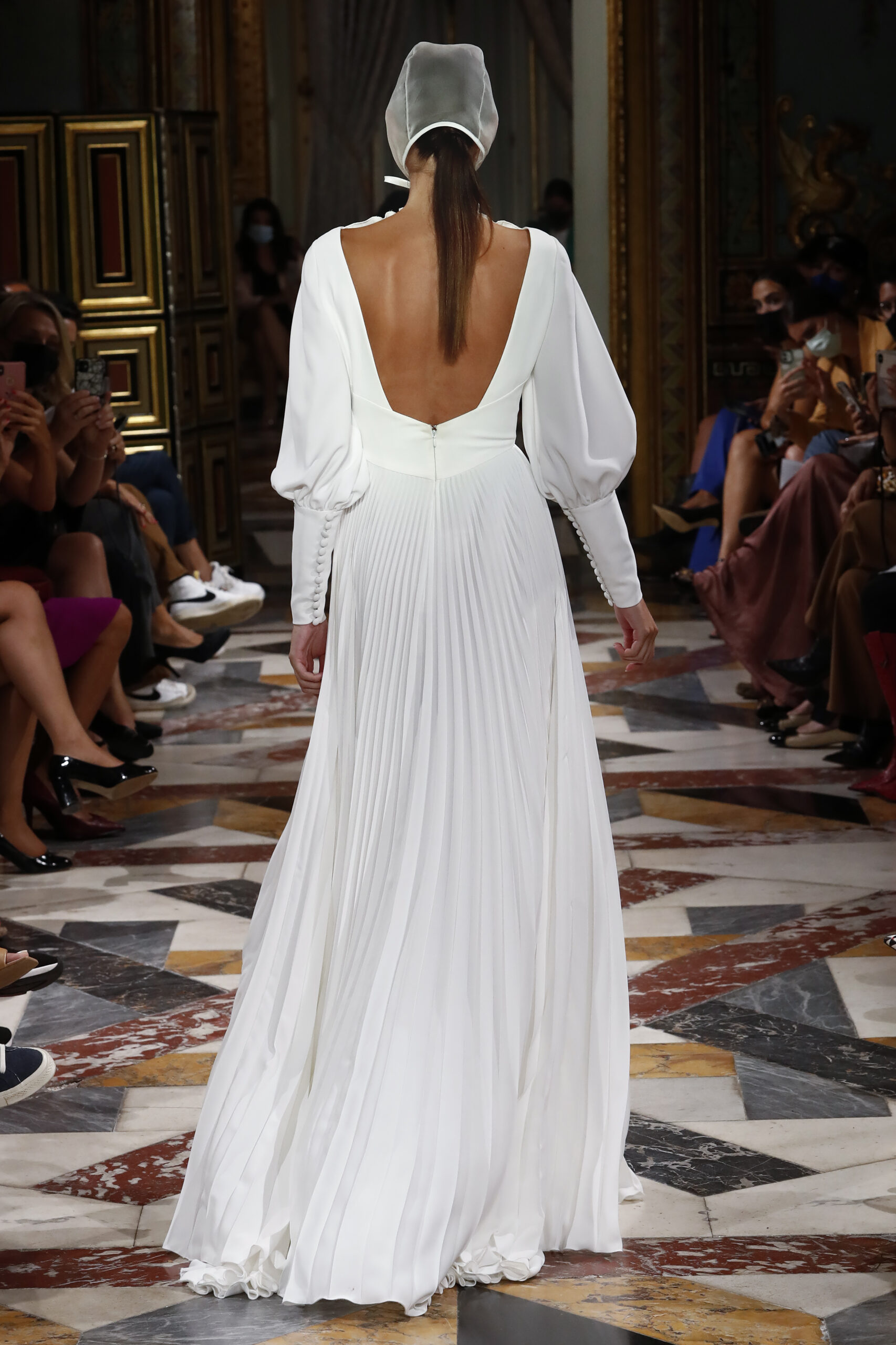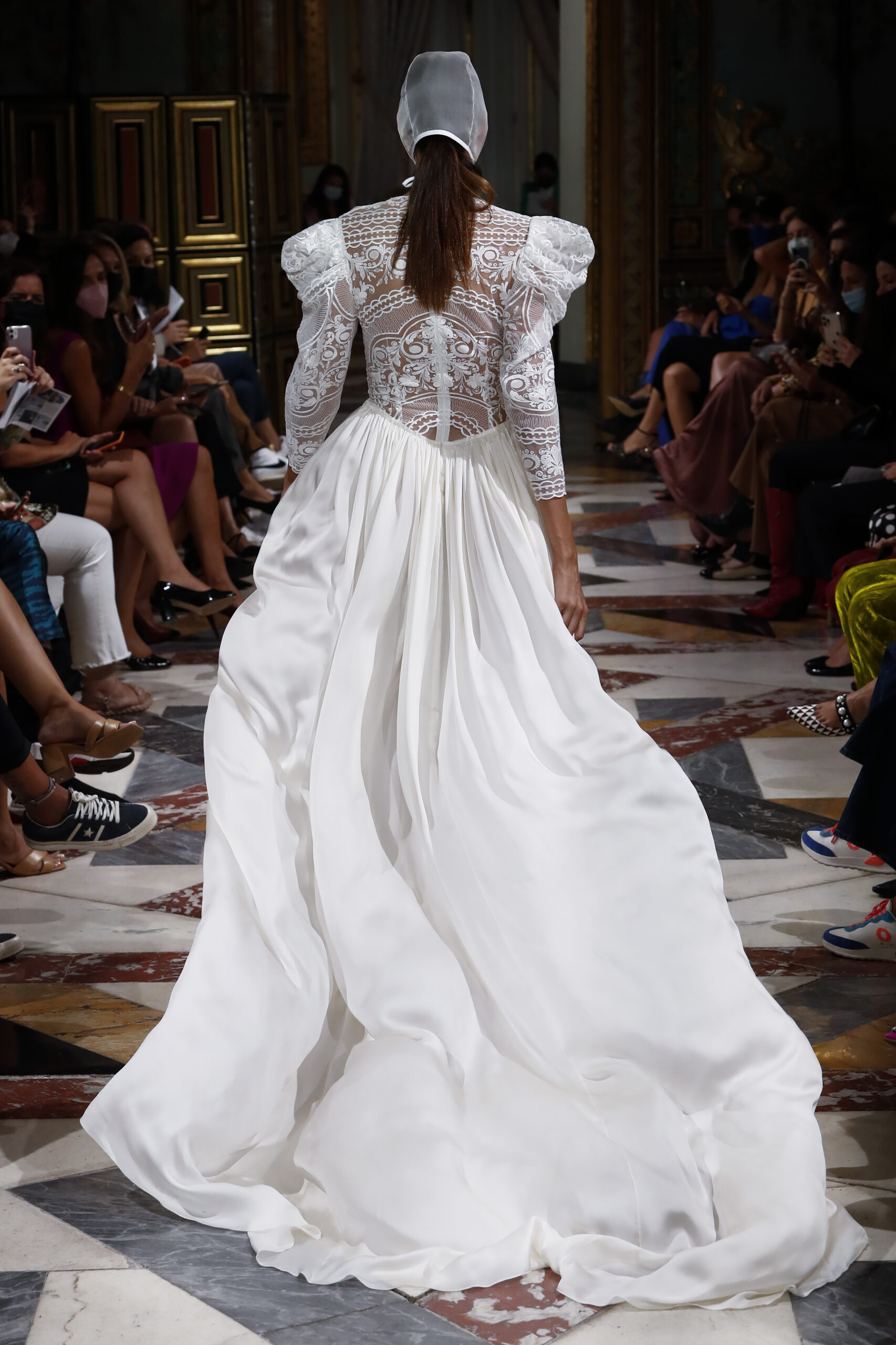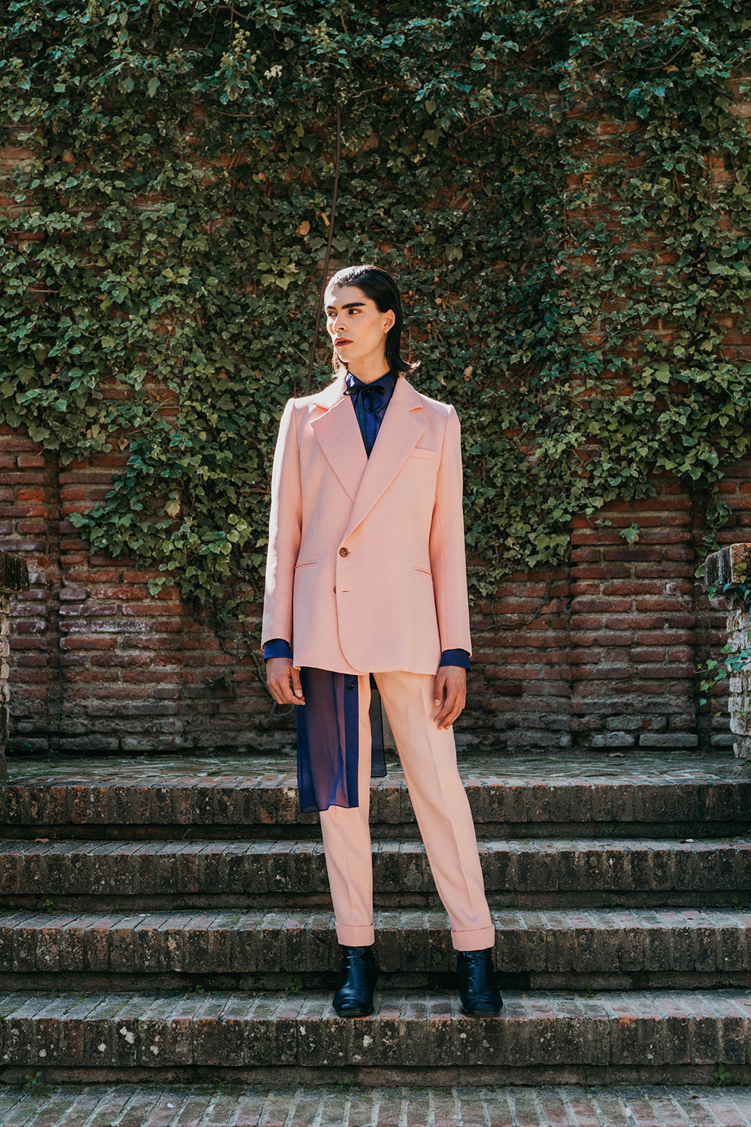 Según el filósofo Jaques Derridia, padre filosófico de la deconstrucción: “La cuestión de la arquitectura es el problema del lugar, de tener lugar en el espacio. El establecimiento de un lugar que hasta entonces no había existido y que está de acuerdo con lo que un día ocurrirá allí, eso es un lugar. “Mostrar que lo claro y evidente dista de serlo.” Las raíces de la firma son la base de esta colección que lleva por título Origen, queriendo así volver a las influencias iniciales y costura a medida que desde un principio había caracterizado a Brea. Los binomios que usan los deconstructivistas, presencia/ausencia, razón/pasión, dentro/fuera son las tipologías que caracterizan “Origen”. El lenguaje de dicha colección parte, como el trabajo de los arquitectos deconstructivistas, de una expectativa convencional, de prendas ordinarias, las cuales, mediante el patrón, tejidos y transparencias, alteran la masa, los planos, el espacio y la percepción del cuerpo. La forma no sigue la función. Juan Brea: “Partiendo de los binomios de trabajo de dichos arquitectos y de nuestras clientas novias, observé que la mayoría se habían casado en fincas, en espacios naturales, intervenidos en mayor o menor medida por el ser humano. En esta colección quería convertir las prendas en parte de ese espacio, jugando a conectar/desconectar éstas de ese ambiente. Buscando que sean una planta de esos jardines, de ahí el uso de guipures florales y desconectándolas mediante las trasparencias y el patrón, dejando entrever partes del cuerpo, que arruina el concepto que tenemos de novia actualmente.”