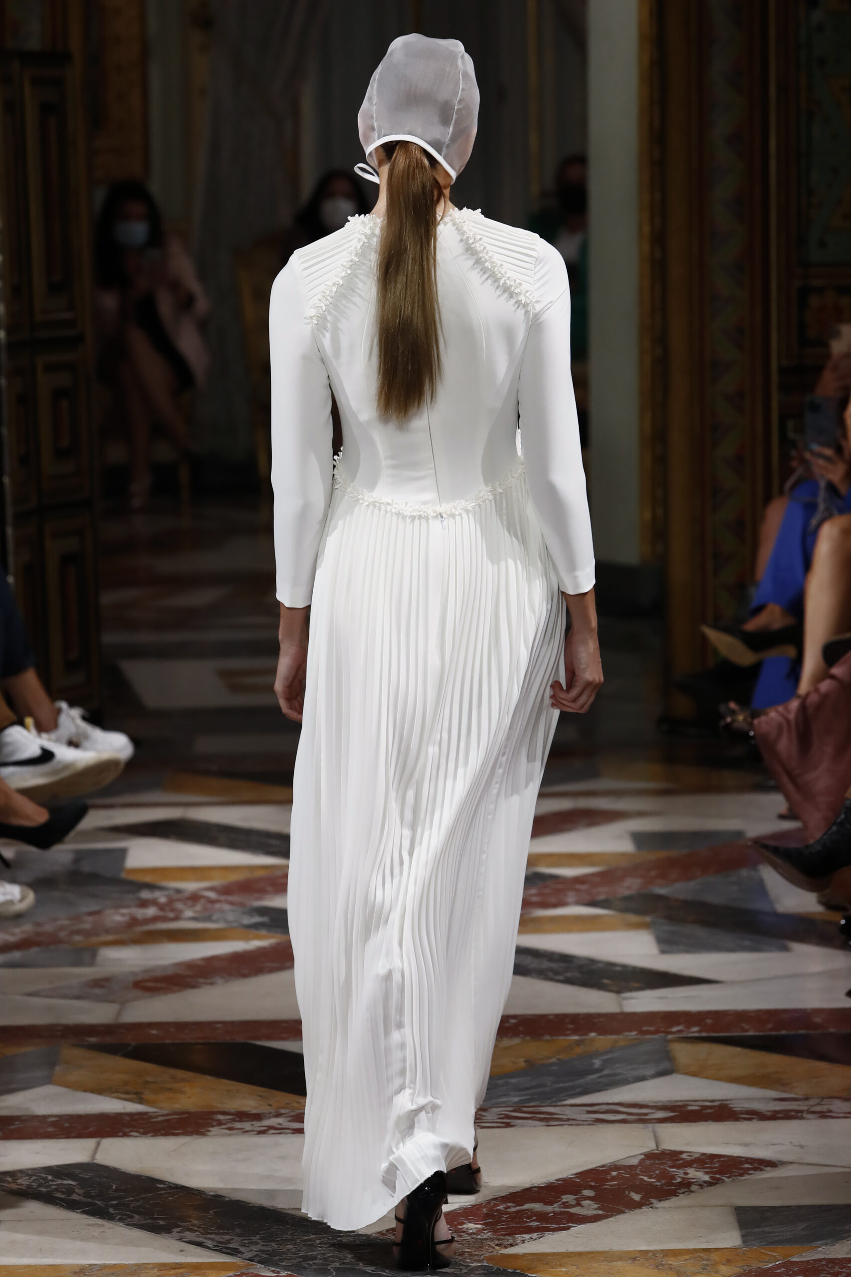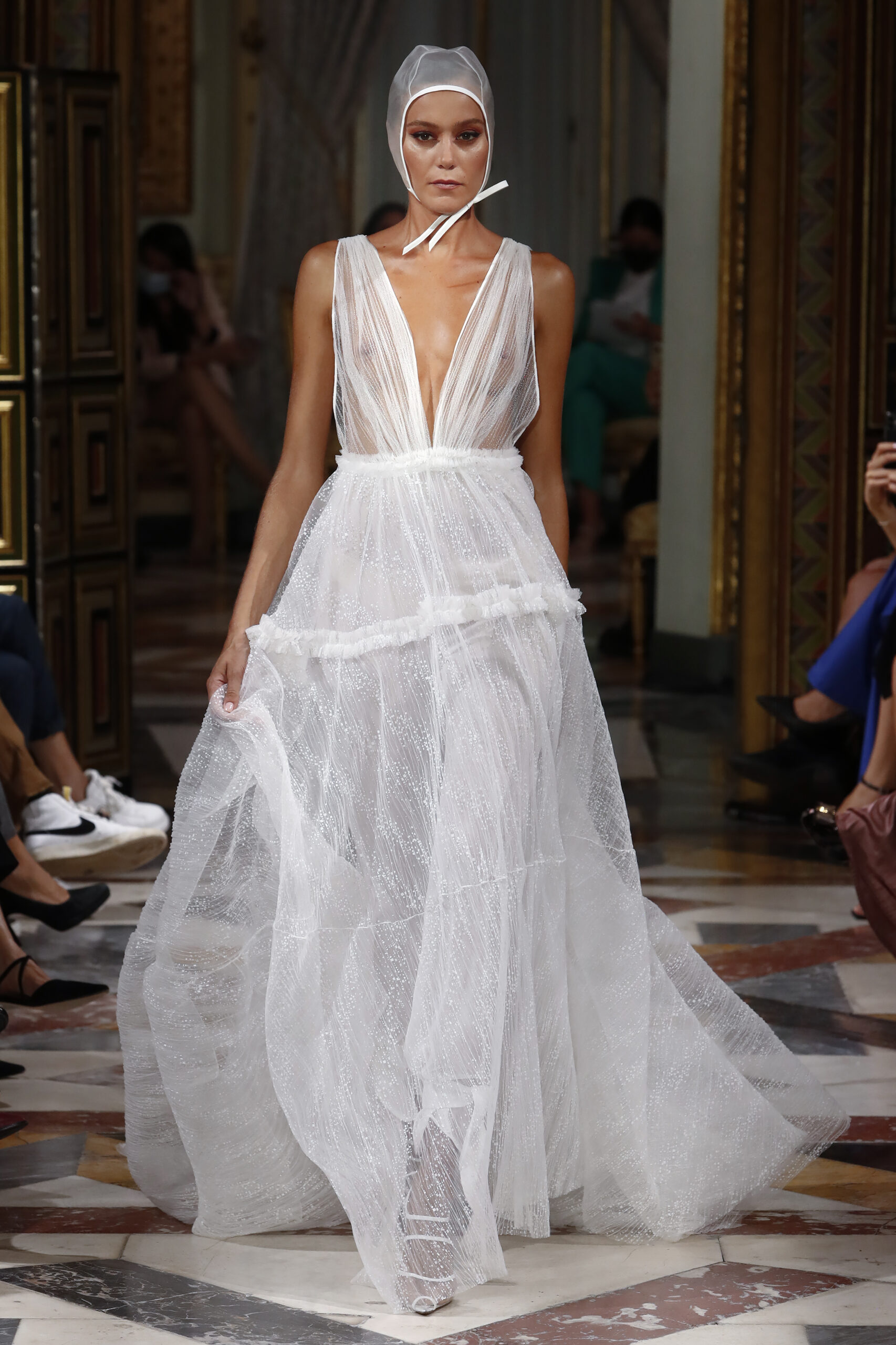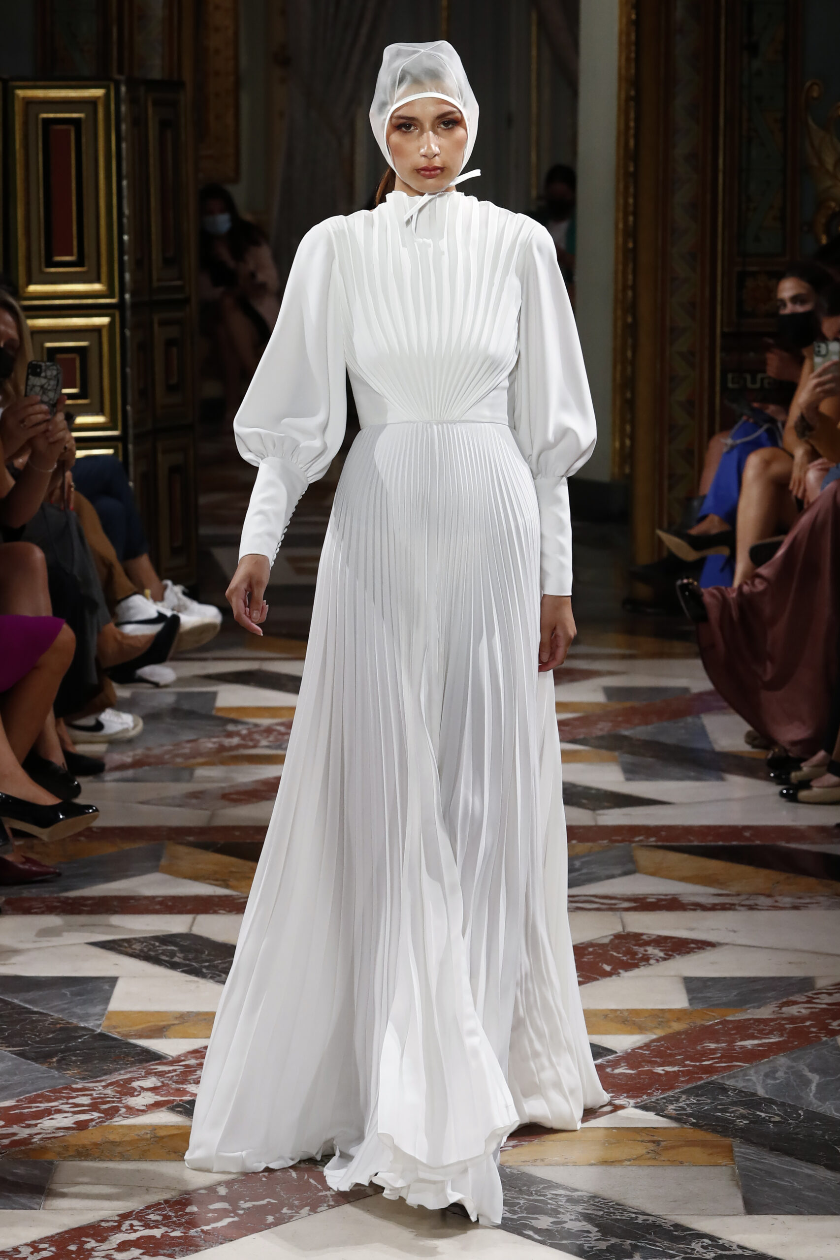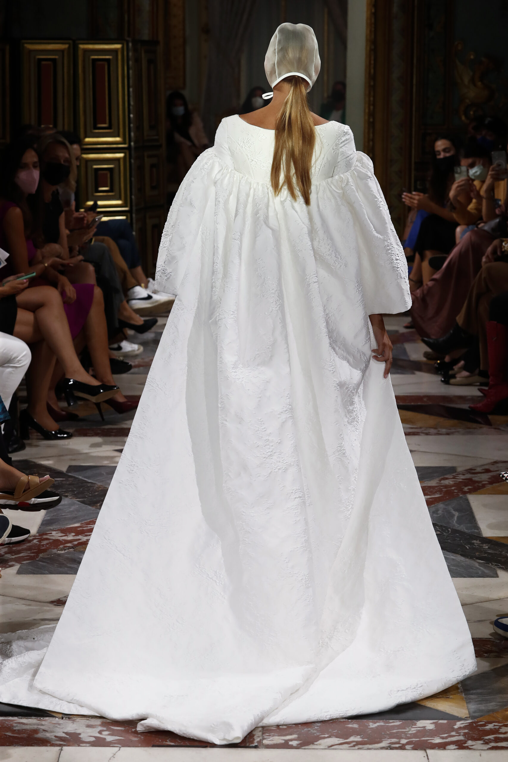 Según el filósofo Jaques Derridia, padre filosófico de la deconstrucción: “La cuestión de la arquitectura es el problema del lugar, de tener lugar en el espacio. El establecimiento de un lugar que hasta entonces no había existido y que está de acuerdo con lo que un día ocurrirá allí, eso es un lugar. “Mostrar que lo claro y evidente dista de serlo.” Las raíces de la firma son la base de esta colección que lleva por título Origen, queriendo así volver a las influencias iniciales y costura a medida que desde un principio había caracterizado a Brea. Los binomios que usan los deconstructivistas, presencia/ausencia, razón/pasión, dentro/fuera son las tipologías que caracterizan “Origen”. El lenguaje de dicha colección parte, como el trabajo de los arquitectos deconstructivistas, de una expectativa convencional, de prendas ordinarias, las cuales, mediante el patrón, tejidos y transparencias, alteran la masa, los planos, el espacio y la percepción del cuerpo. La forma no sigue la función. Juan Brea: “Partiendo de los binomios de trabajo de dichos arquitectos y de nuestras clientas novias, observé que la mayoría se habían casado en fincas, en espacios naturales, intervenidos en mayor o menor medida por el ser humano. En esta colección quería convertir las prendas en parte de ese espacio, jugando a conectar/desconectar éstas de ese ambiente. Buscando que sean una planta de esos jardines, de ahí el uso de guipures florales y desconectándolas mediante las trasparencias y el patrón, dejando entrever partes del cuerpo, que arruina el concepto que tenemos de novia actualmente.”