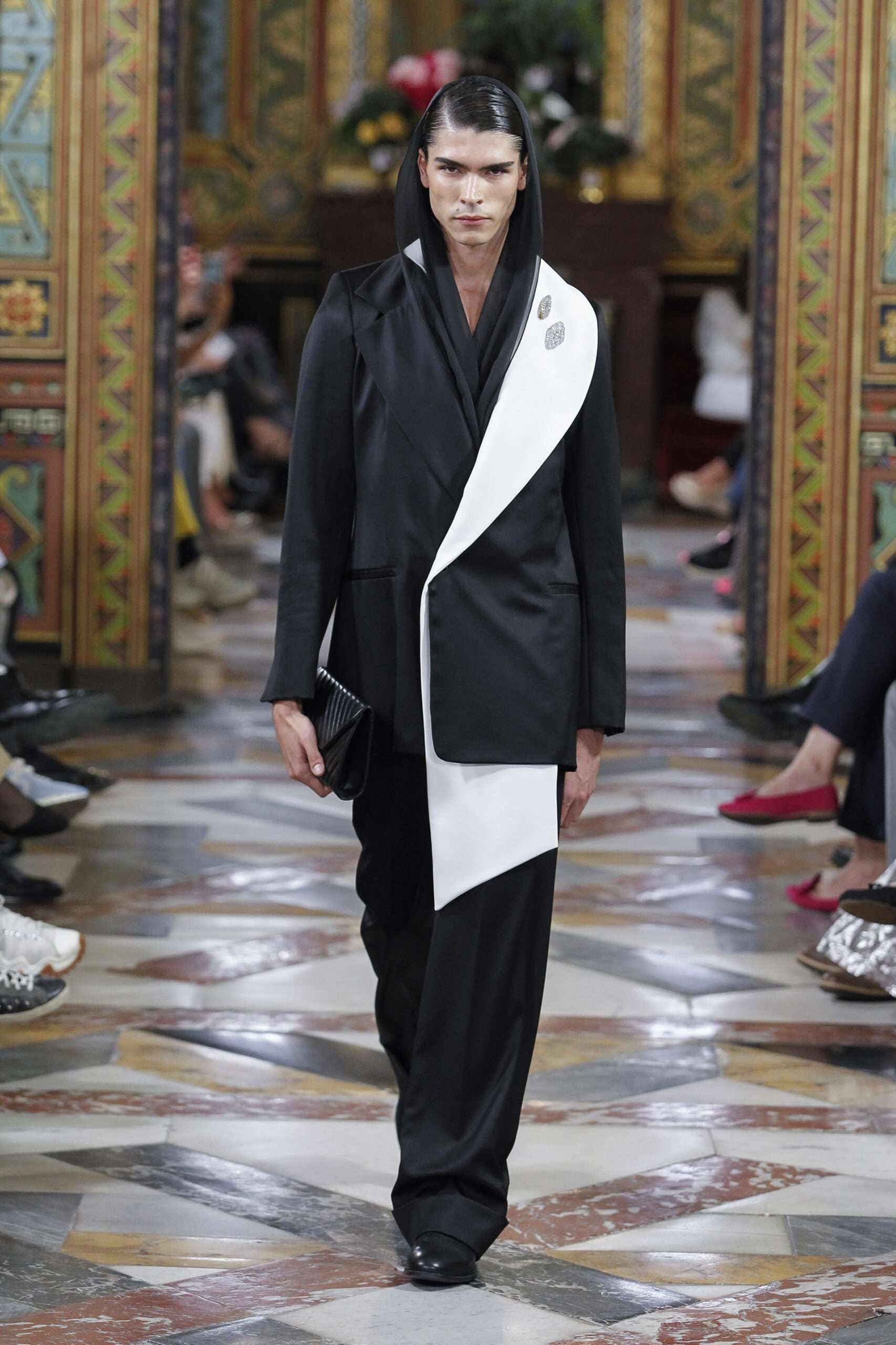 Como si de un momento congelado en el tiempo se tratara, comienza la colección mediante líneas angulosas y marcadas en las prendas,